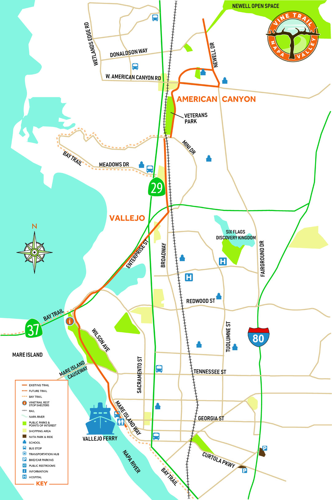 The Vine Trail starts at the Ferry Terminal in Vallejo, welcoming locals and visitors coming from across the Bay.